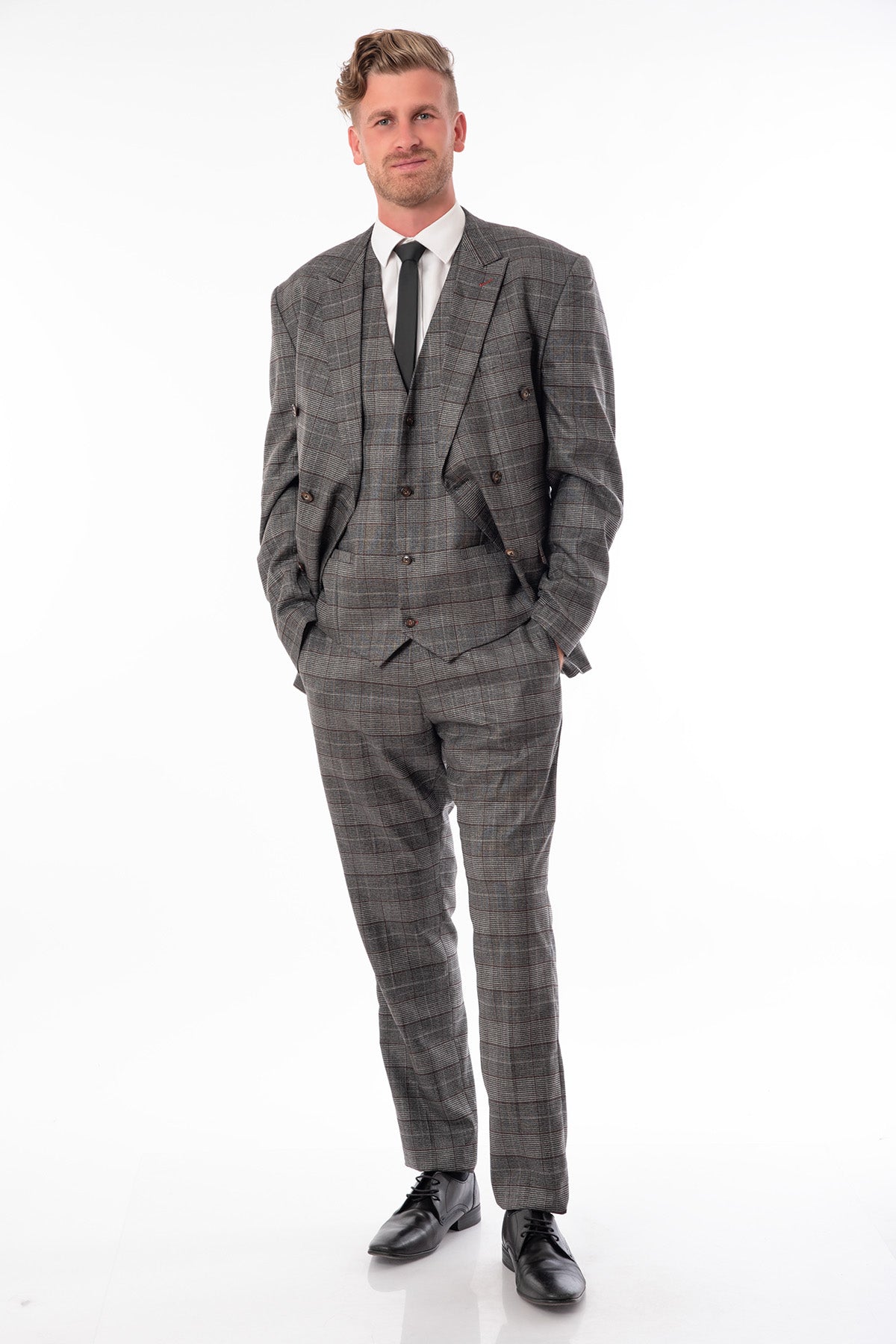 Upgrade your formal attire with this distinguished double-breasted three-piece suit, designed to exude confidence and timeless style. Featuring a structured fit that strikes the perfect balance between elegance and comfort, this suit is adorned with a subtle lining, and the double-breasted jacket adds a bold and refined touch, making it ideal for weddings, business occasions, or any formal event where making an impression matters.